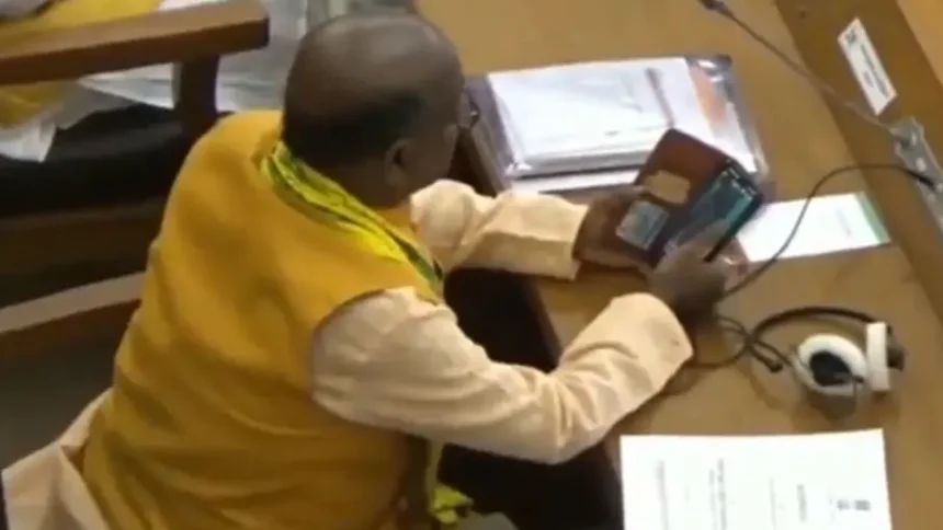 त्रिपुरा के एक बीजेपी विधायक का विधानसभा सत्र के दौरान मोबाइल फोन पर अश्लील सामग्री देखते हुए एक कथित वीडियो सोशल मीडिया पर वायरल हो रहा है। उस वीडियो को बागबासा निर्वाचन क्षेत्र का प्रतिनिधित्व करने वाले विधायक जादव लाल नाथ के पीछे बैठे किसी शख्स ने बनाया है।